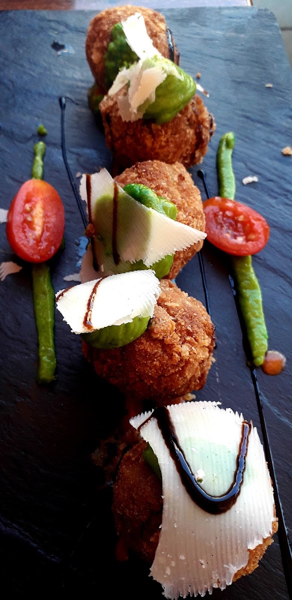 Best Pimientos Padrón ever! A list of real vegetarian dishes, not just 'leave out the meat' options. My Quinoa salad was delicious and my partner's pulpo tentacle excellent. Lovely atmosphere in the less well-known but prettiest square in the barrio of Puerto de la Cruz.