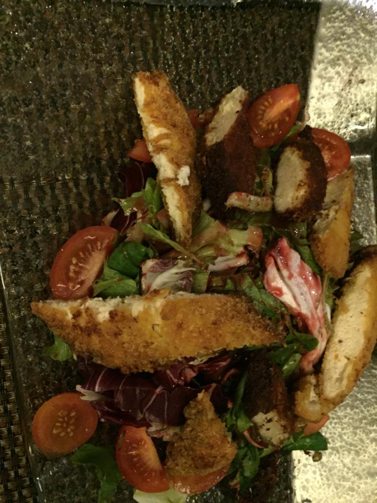 nicely located in a cozy square, the service was very professional. had seafood soup (interesting flavor), chicken salad (big portion) and tomato/shrimp/arugula salad (very good but portion not to justify 13.5 euros). good house wine.