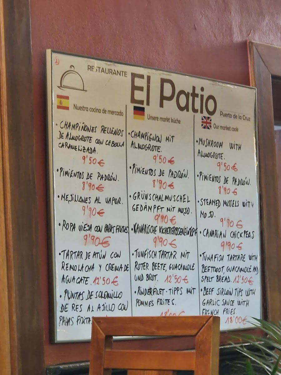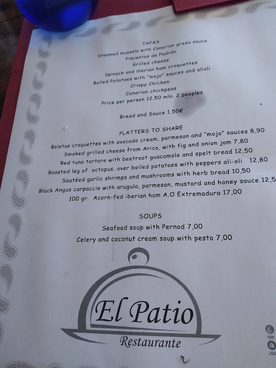 Welcome to EL PATIO - Spain, a charming Mediterranean restaurant nestled in the heart of Puerto de la Cruz, Santa Cruz de Tenerife. This gourmet haven, situated in the picturesque Plaza Benito Perez Galdos, invites guests to indulge in a delightful culinary experience. Patrons rave about the creatively crafted tapas, showcasing a perfect balance of savory and sweet flavors. The standout anchovy salad and generous portions of seafood soup are must-tries that reflect the chef's imaginative flair.